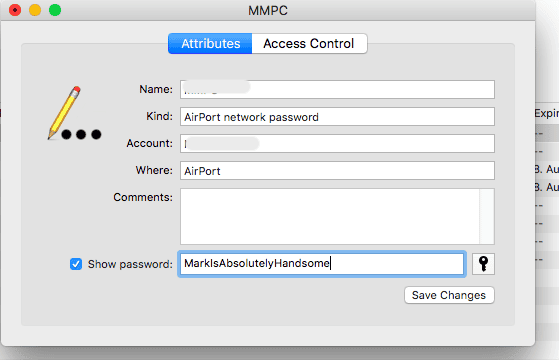 The name of your net will appear under "Name" and "Accounting" (again, mine is blanked outer). Now, simply click the box future to "Show Password". It will ask you to enter your username and watchword twice, then your password will look.